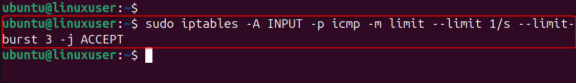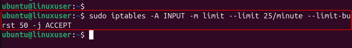 Ubuntu 24.04 comes with iptables already installed. To apply the rate-limit rule, you only need to make sure that iptables has been installed and is active.