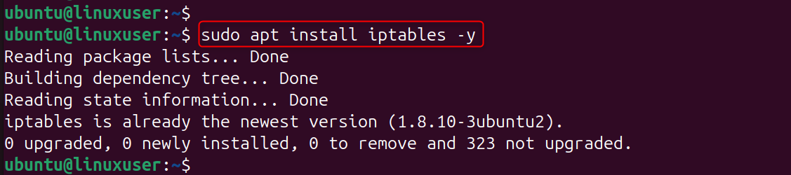 Step 1: Install iptables (Already Included in Ubuntu)
