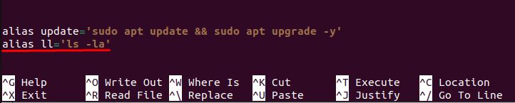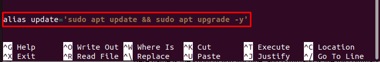 After saving this alias, typing update will run both the update and upgrade commands automatically.