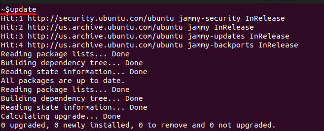 alias update='sudo apt update && sudo apt upgrade -y'