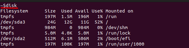 alias disk='df -h'