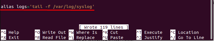 alias logs='tail -f /var/log/syslog'