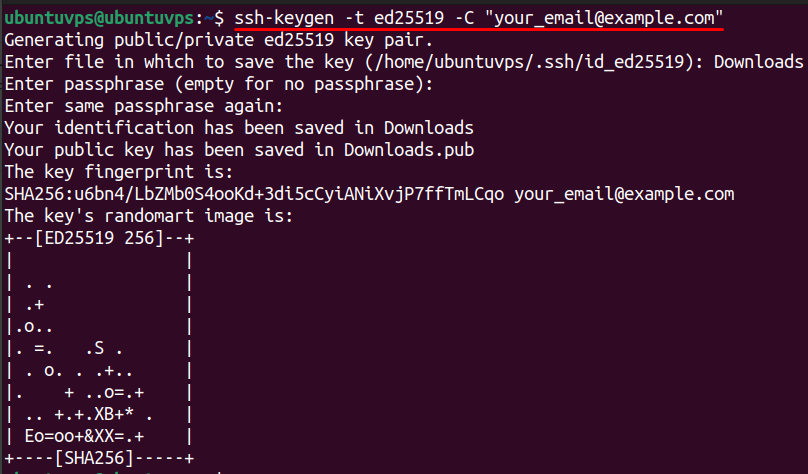 Press ENTER for default file location. Set a passphrase if you want extra protection (recommended). This will create two files: