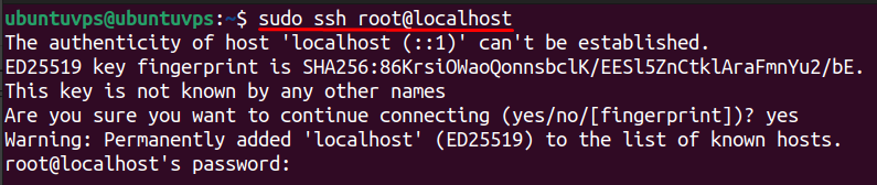 Enter your sudo user’s password one last time. After this, your public key is installed and you can log in without typing a password.