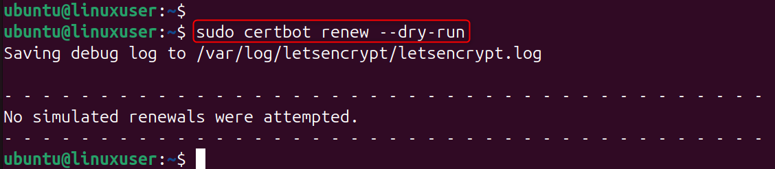 Let’s Encrypt certificates expire every 90 days. Test auto-renew: