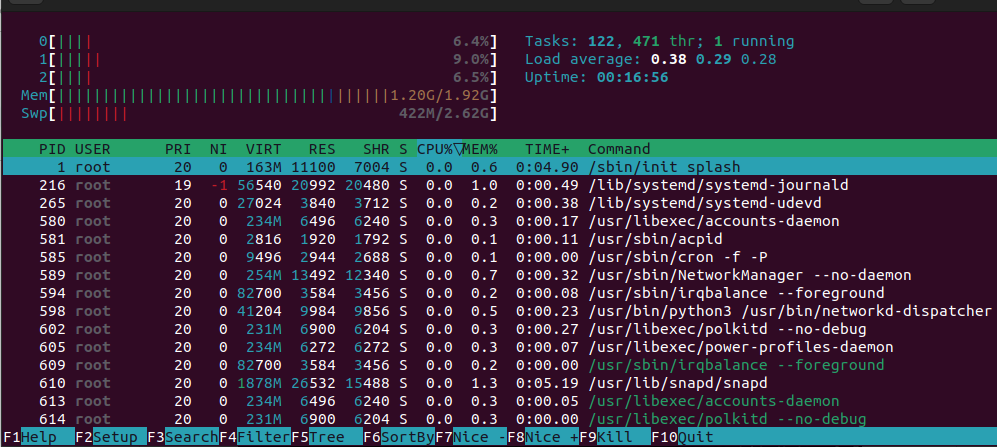 htop is designed for lightweight, real-time process monitoring. When you launch it, you immediately see how CPU cores, memory, and swap are being used. Its interactive shortcuts let you sort, search, and kill processes on the fly. Because it is fast and responsive, htop is ideal for day-to-day monitoring and quick troubleshooting on a VPS.