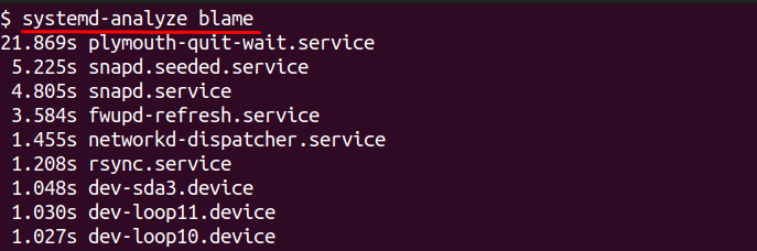 This will display a list of all running services, sorted by how long they took to start — the slowest ones appear at the top.