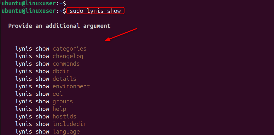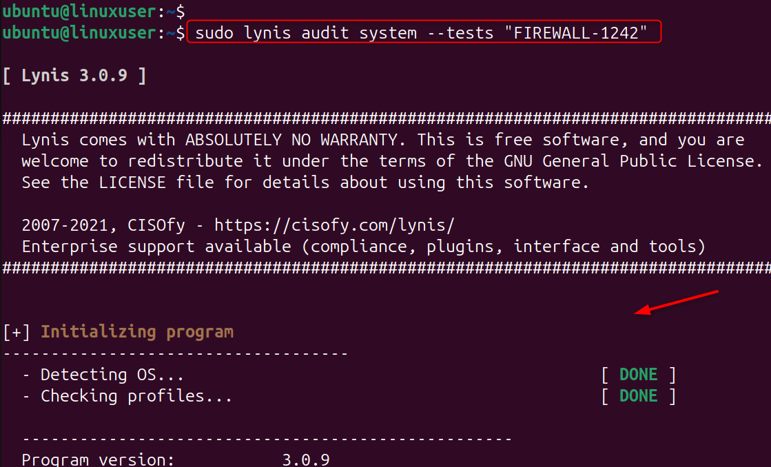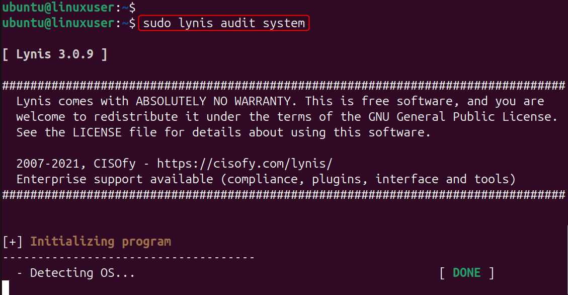 Install the Lynis package first before performing any security audit. On Ubuntu/Debian