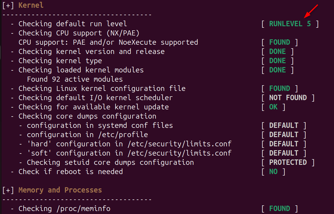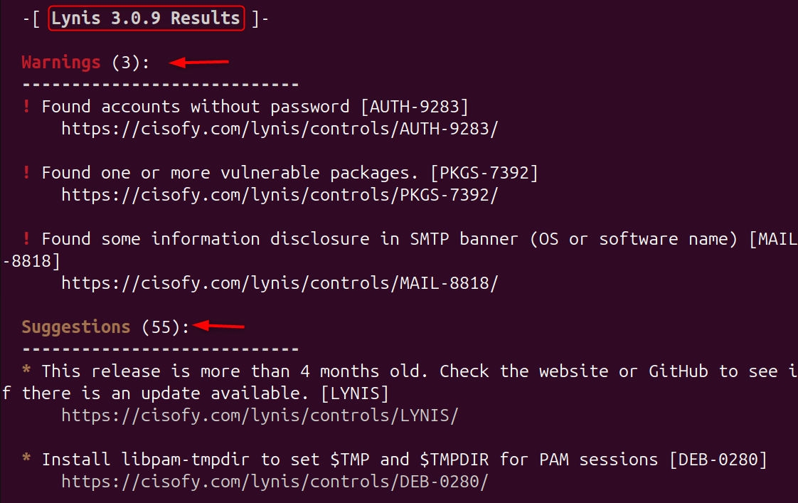 Lynis analyzes the kernel settings, installed programs, user permissions, and firewall rules to generate a detailed report.