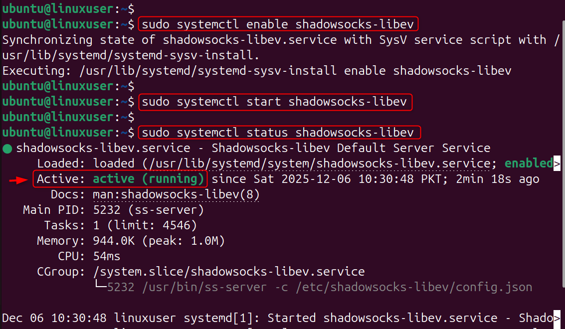 Step 4: Enable and Start Shadowsocks Service
