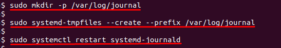 These commands create a directory for permanent log storage and restart the journal service to apply the change.